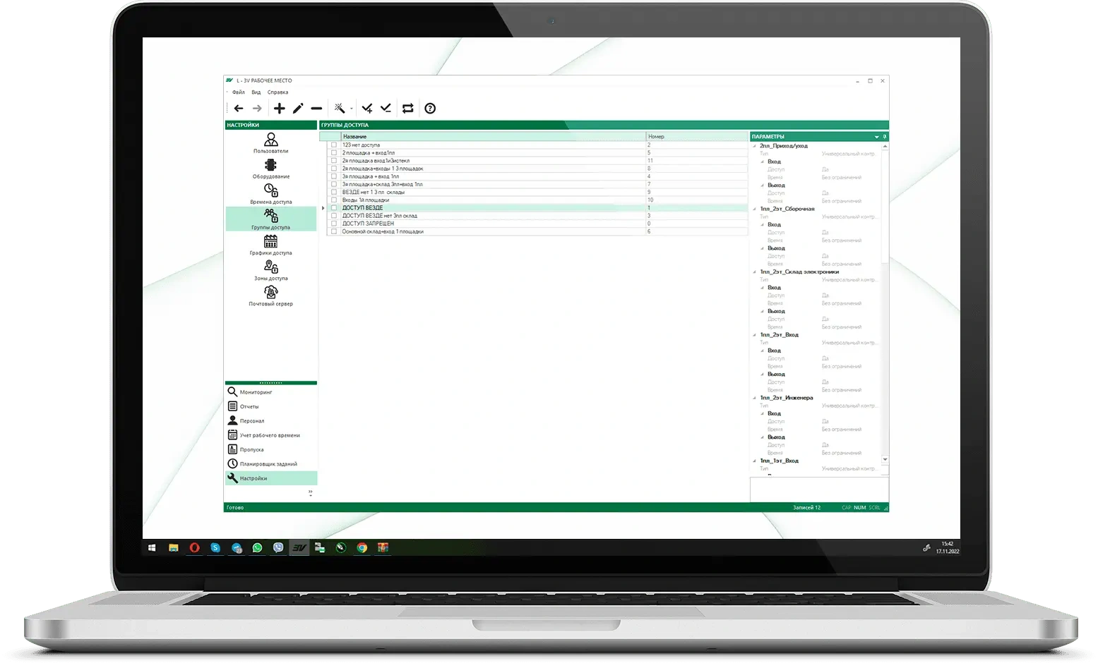 Во вкладках «Время доступа» и «Группы доступа» производится создание и редактирование прав доступа через точки прохода