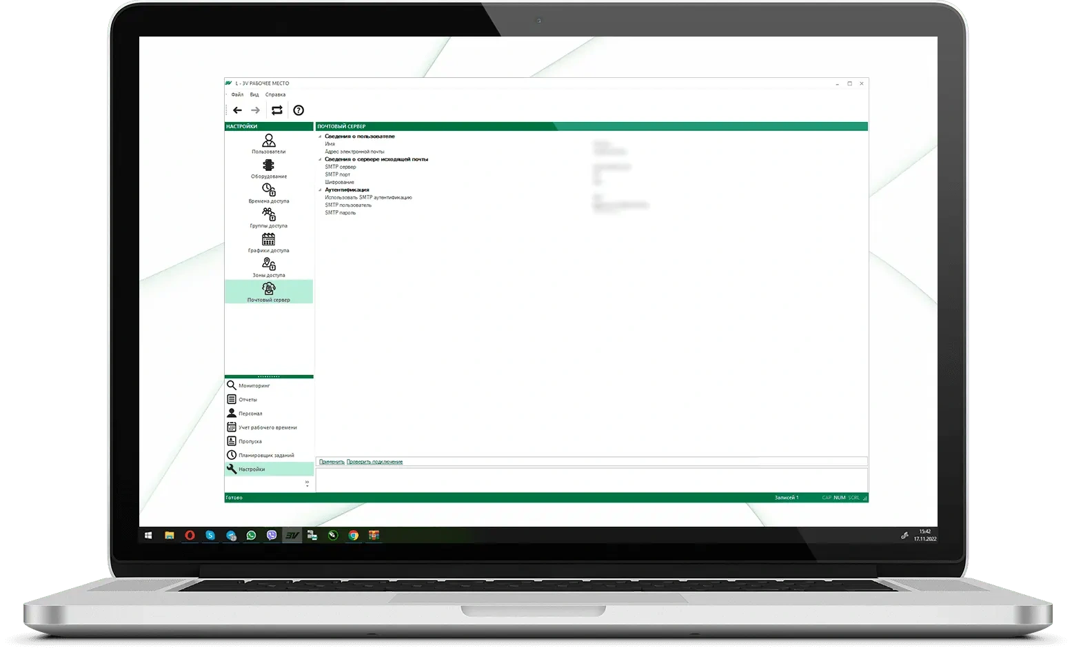 Функция «Почтовый сервер» позволяет настроить электронную почту для автоматической отправки отчётов.