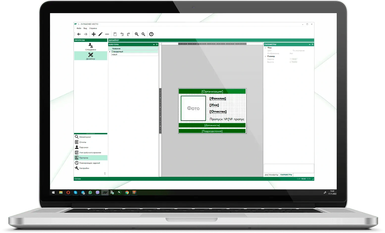 Функция «Дизайнер» позволяет произвольно редактировать вид распечатываемого пропуска.