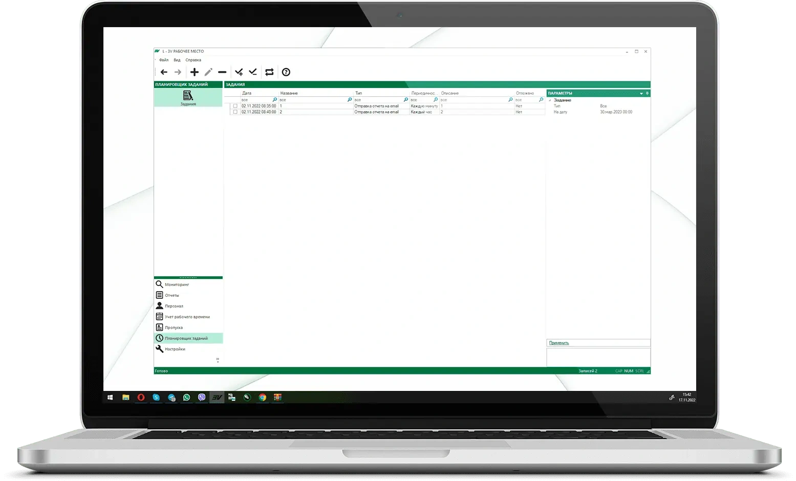 Модуль «Планировщик заданий» позволяет создавать правила по отправке отчётов различных видов на электронную почту с произвольной периодичностью.