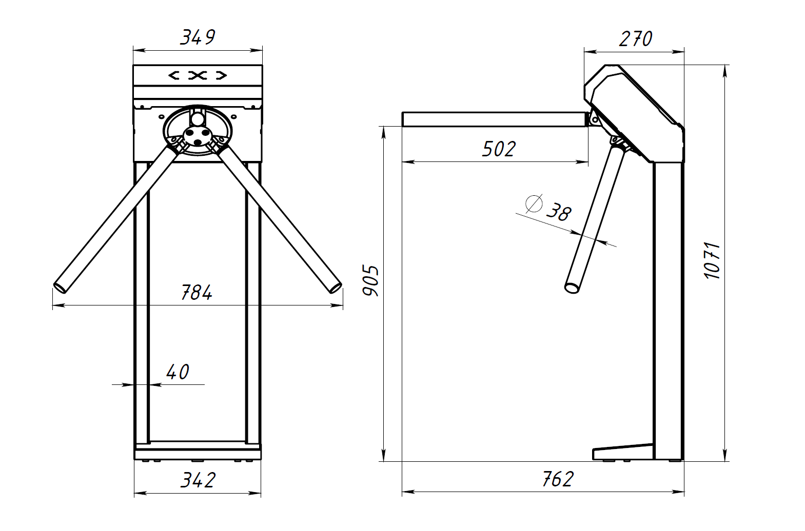 | Тип турникета | турникет-трипод стоечный электромеханический с автоматическими преграждающими планками |