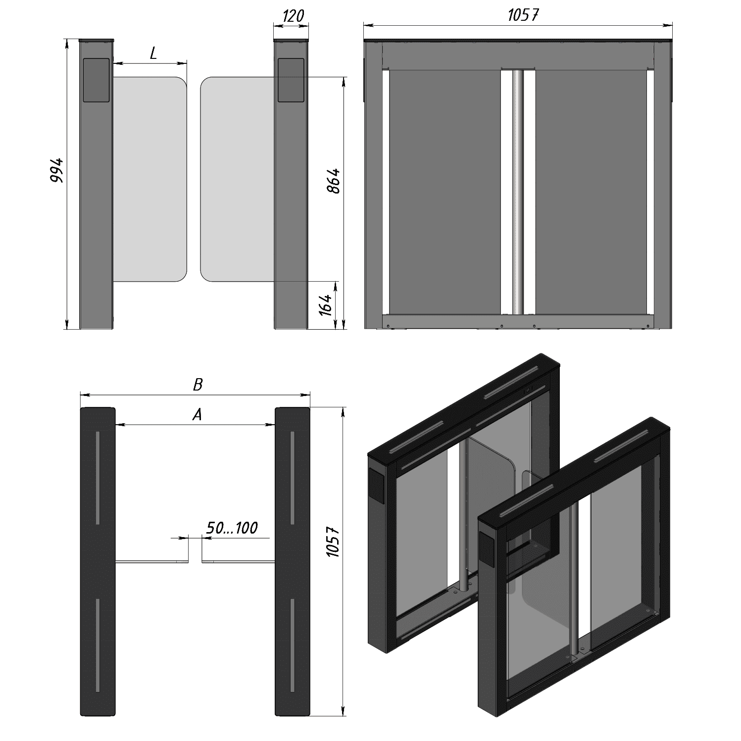 | Вес турникета без створок | S: 102 кг (2 х 51 кг) SL: 126 кг (2 х 63 кг), | |||||