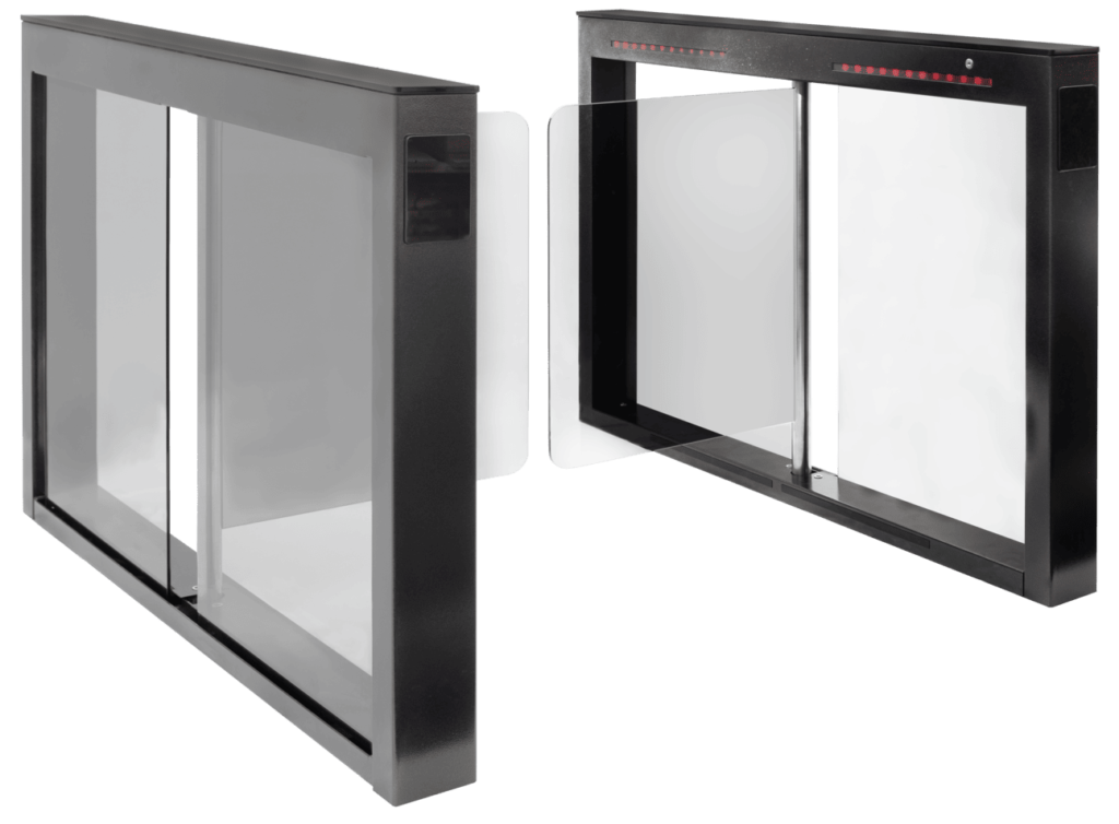3V Model SL — такой же турникет для скоростных проходов, как и 3V Model S, но с удлинёнными габаритными размерами створок и длины стоек, что увеличивает размер турникета и ширину прохода.