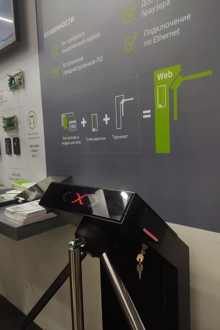 Web-/OSDP-турникет — это готовое решение для запуска СКУД, позволяющее спроектировать и организовать контроль доступа посетителей на проходных/КПП.