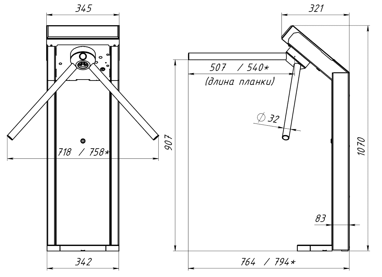 | Тип турникета | турникет-трипод стоечный электромеханический |